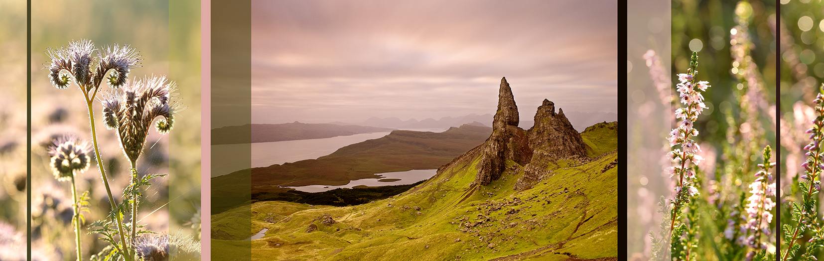 Motive: Schottland, Old Man of Storr, Heide, Heidekraut, Calluna vulgaris, Blühende Kräuter
